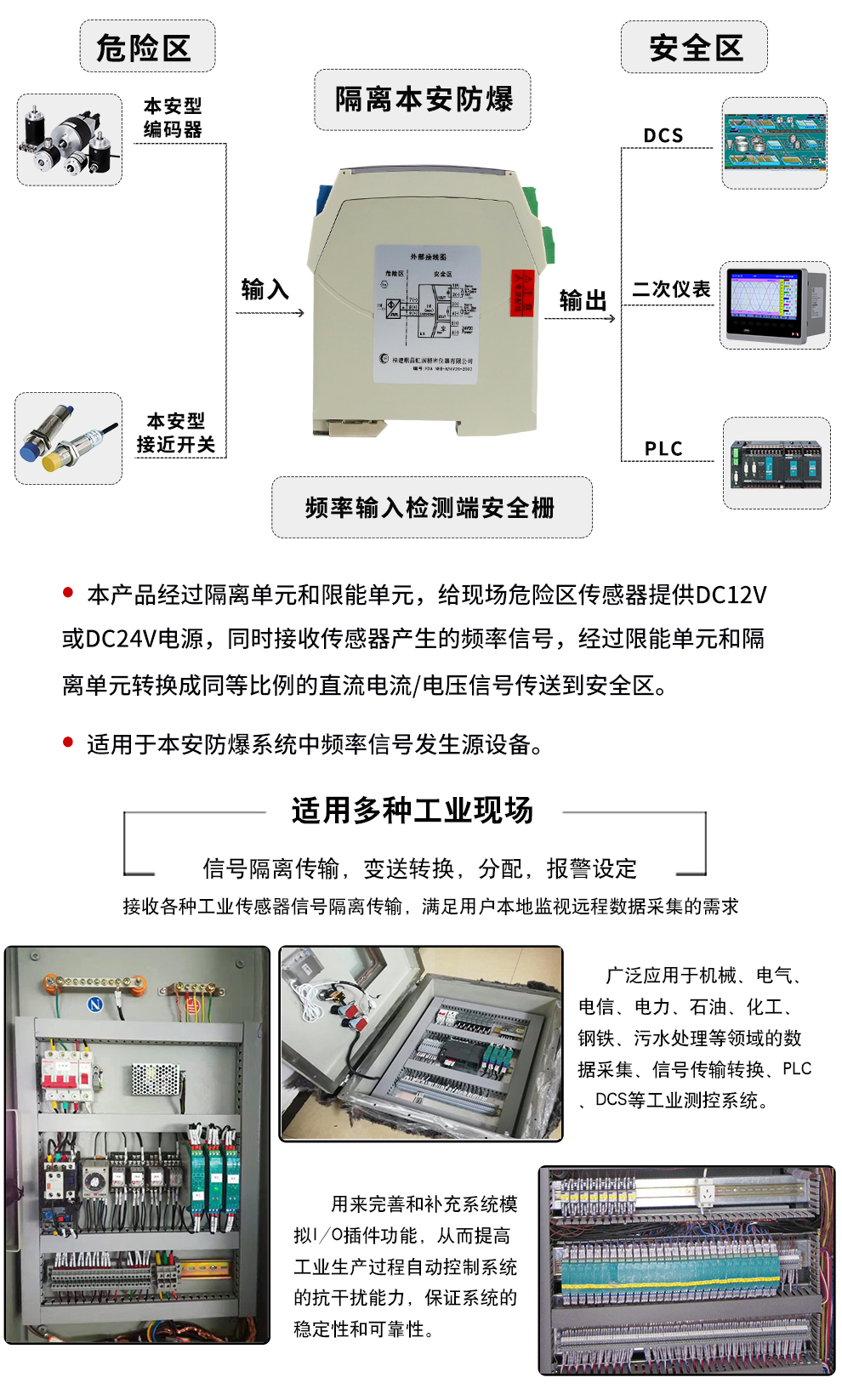 虹潤公司是專業(yè)生產(chǎn)隔離器的國家專精特新“小巨人”企業(yè)。生產(chǎn)的隔離式安全柵涵蓋信號頻率輸入、電壓輸入、電流輸入、熱電阻輸入、熱電偶輸入、開關量輸入等多種產(chǎn)品類型。產(chǎn)品獲得具備減震抗干擾能力的溫度變送器、信號隔離器、一種二端子模塊、無源信號隔離器等4項國家發(fā)明專利,主持起草物聯(lián)網(wǎng)智能溫度儀表、現(xiàn)場設備工具(FDT)接口規(guī)范、工業(yè)過程測量和控制系統(tǒng)用溫度變送器等3項國家標準,以及通信系統(tǒng)多通道數(shù)據(jù)采集控制終端規(guī)范軍用標準。參與國際5G標準制定,取得智能隔離式安全柵等4項相關軟件著作權。產(chǎn)品廣泛應用于石油、電力、化工,冶金、智能制造、污水處理等諸多行業(yè)。